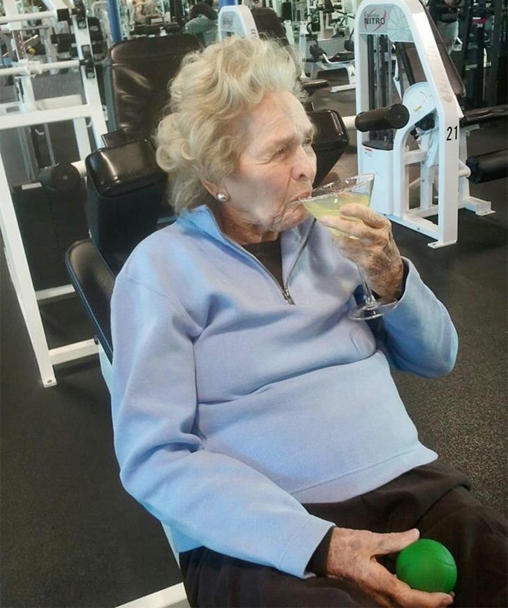 Diese Frau hat die Idee eines Ruhetags auf ein neues Niveau gehoben. Sie entspannt sich bei einem ausgefallenen Drink und sieht eher so aus, als wäre sie in einer Lounge als mitten in einem Fitnessstudio. Während andere hart arbeiten, ist sie das Bild der Ruhe und genießt ihre Erfrischung wie eine wohlverdiente Belohnung. Wer sagt, dass man ins Schwitzen kommen muss, um Teil der Fitnessstudiokultur zu sein?